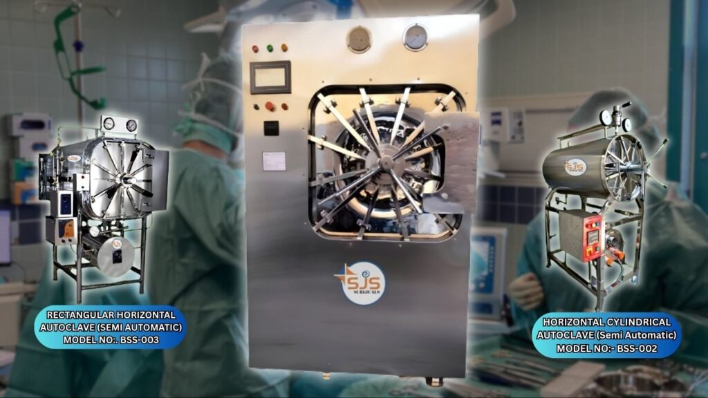 SJS Surgical have wide range Of horizontal Rectangular Autoclaves. Semi Automatic Rectangular Autoclave will be front loading and in Horizontal shape with triple layer with boiler. These high pressure front loading play important role in sterilization procedure required in hospitals , pharmaceutical companies, biopharma & microbiology lab etc. Horizontal Rectangular Autoclave unit are made of SS to ensure corrosion resistance surface. Triple walled construction ensure excellent level Of safety. Boiler is fitted separately and connected to the chamber. water level is also attached to the boiler with automatic IOW water cut-off. User can easily set the desired temperature with the help of digital controller fitted on the front side Of the unit. we provide radial locking pressure door with silicon gasket.