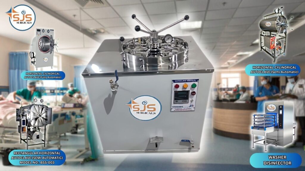 - High pressure, electrically heated vertical steam sterilizer is used for sterilization of surgical instruments, dressing material, linen, rubber, and plastic material by means of saturated steam under pressure of 15 to 20 psi. (adjustable)