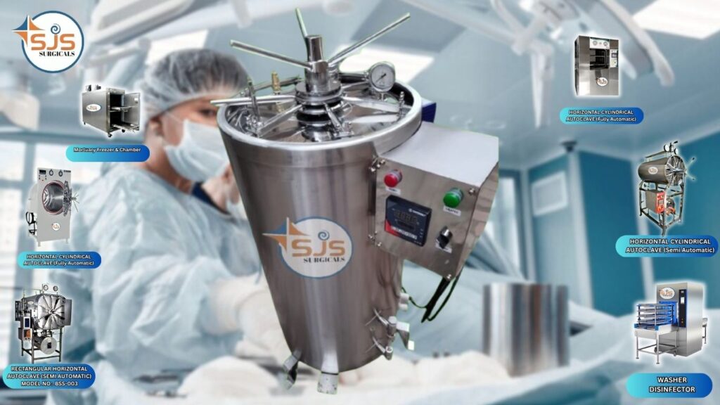 CONSTRUCTION AND SALIENT FEATURES OPTIONAL : SJS Surgical have two model of vertical tripled waled & steam storage autoclave. the inner chamber & jacket is made of SS 304/316, other unit is constructed of ss304 and is triple walled. outer chamber is also made of 304. Th3e unit is compete in all respect with automatic water inlet